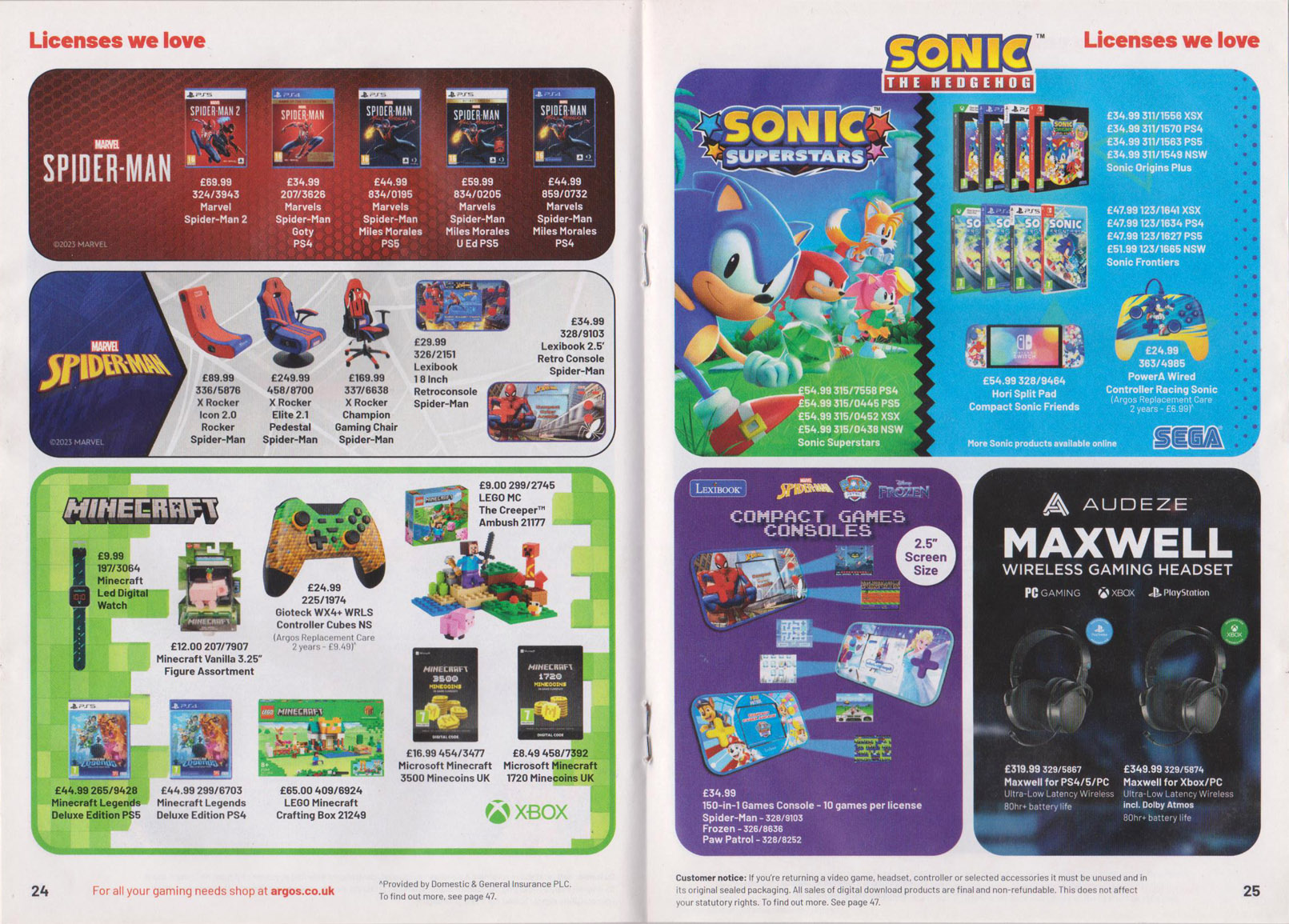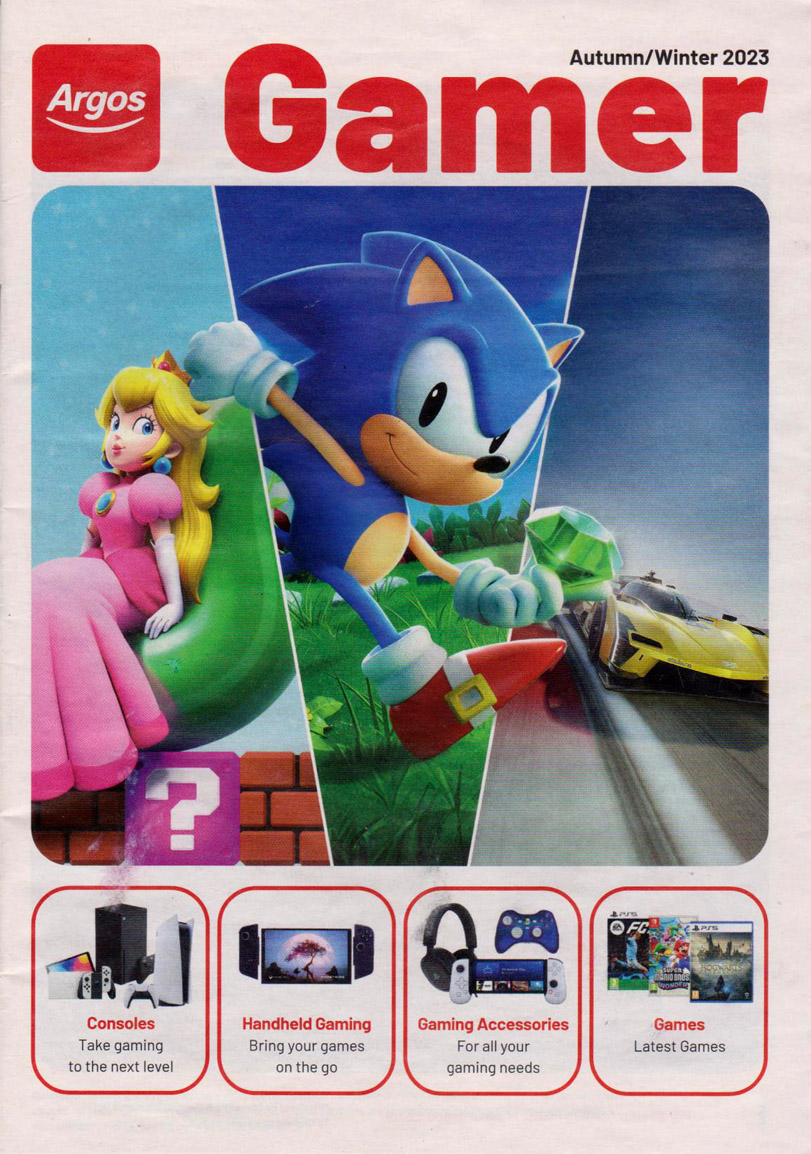 A free catalogue from UK retailer Argos that details all the gaming items they were selling in Autumn/Winter 2023. Sonic Superstars is heavily featured on the front cover. Additional Images |