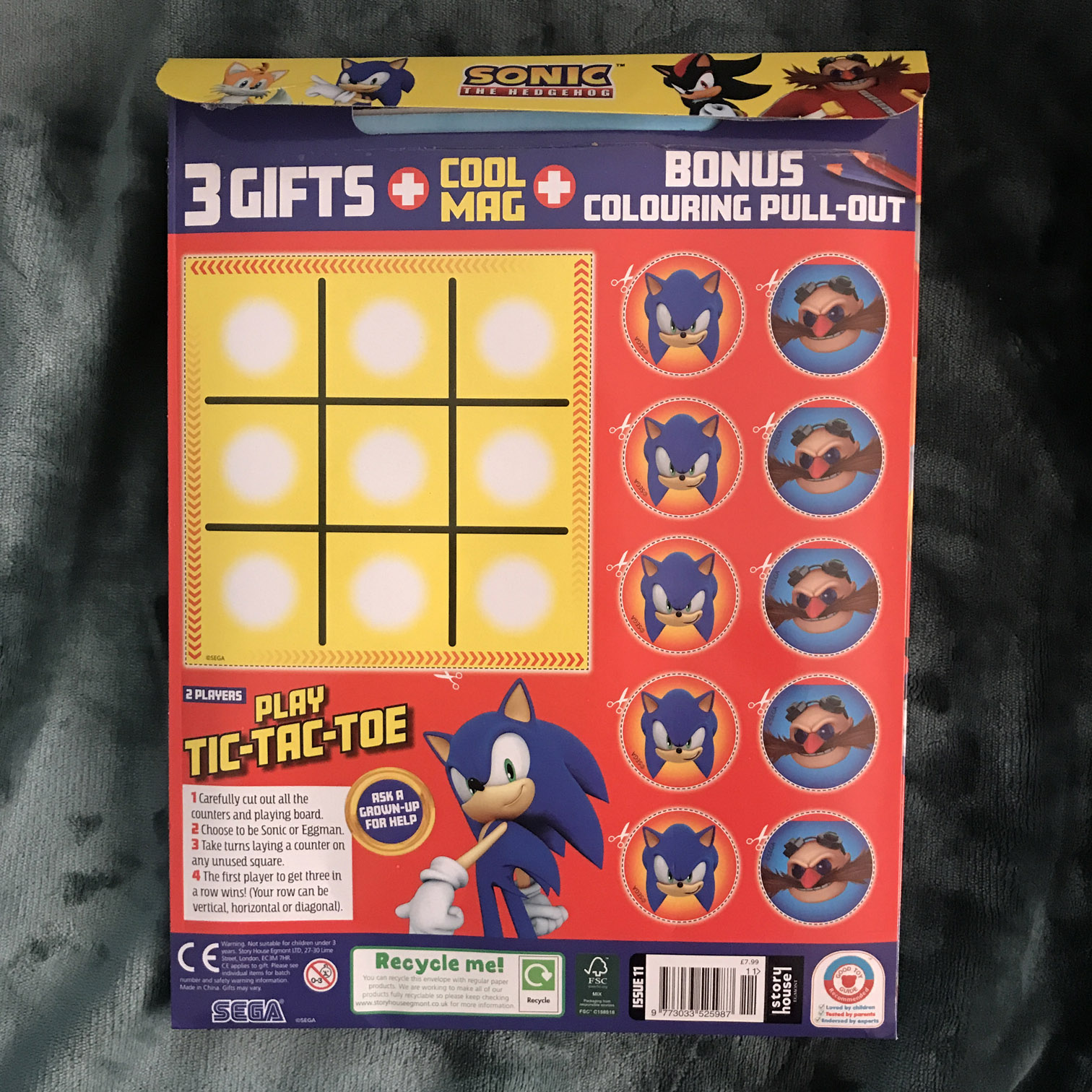 An official Sonic the Hedgehog-themed activity magazine published by Story House Egmont Ltd and first released in the UK in December 2023. The magazine originally began publication as an annual special, and would later become a monthly publication. Each magazine usually comes bundled with additional items like stickers, a cut-out character mask, key chains and fidget toys. The magazine itself contains fact sheets, puzzles, colouring pages, cut-out posters, and comics pieced together using screencaps of animated shorts like Sonic Mania Adventures. None of the artwork featured in the magazine is bespoke – all of it comes from existing SEGA resources. Additional Images |